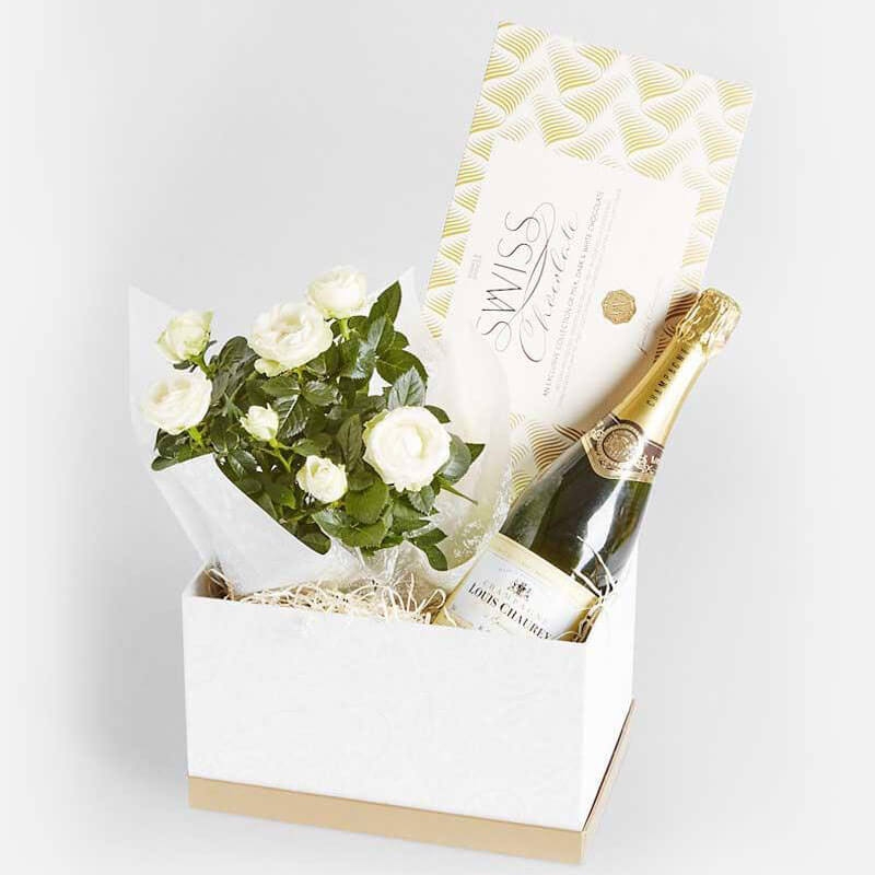 Hộp quà có hình thức sang trọng, bắt mắt, bên trong là 12 bông hồng sáp màu sắc rực rỡ và một chú gấu bông đáng yêu.